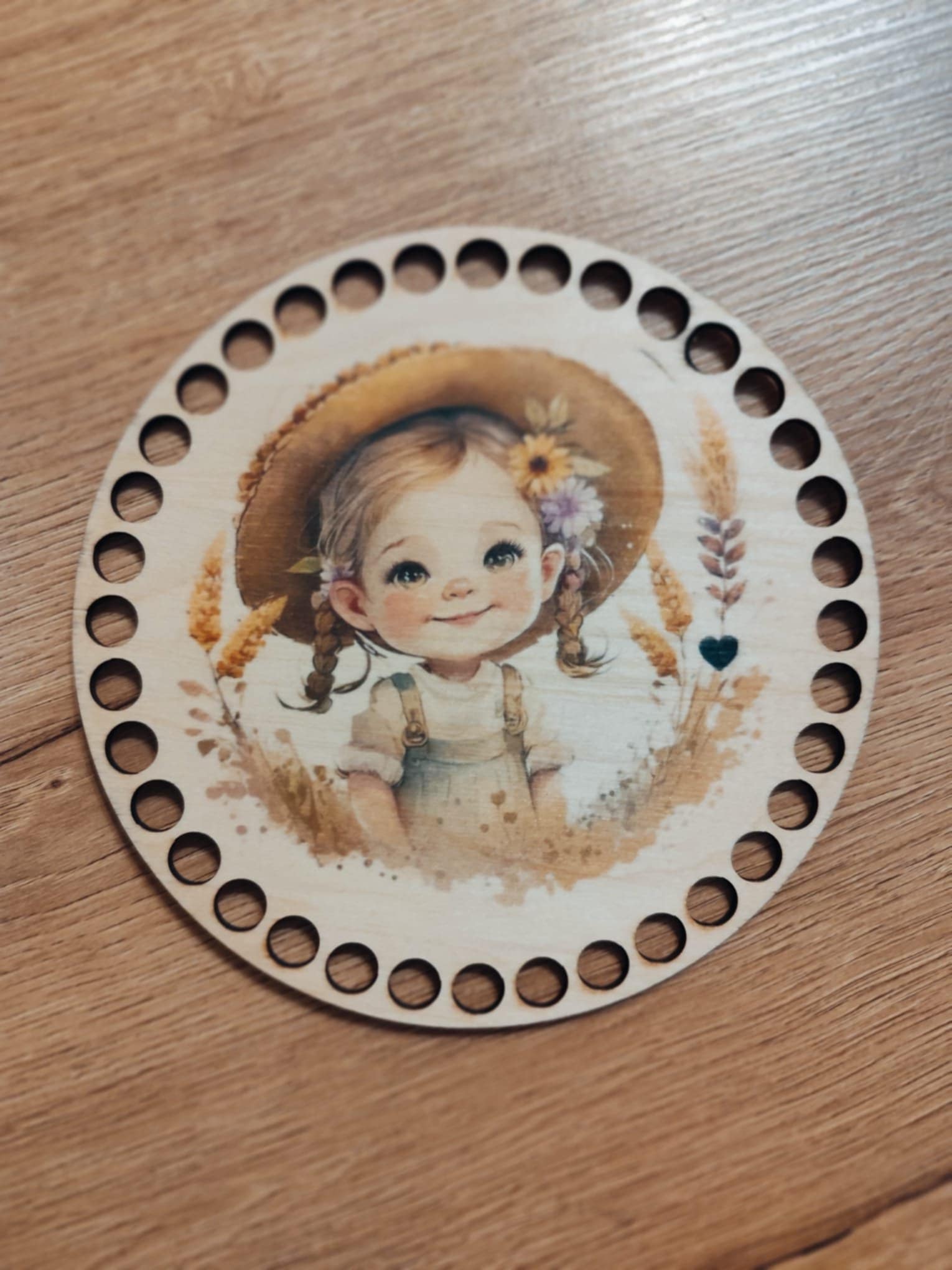Okrągła baza do szydełkowania – solidna, drewniana podstawa z precyzyjnie wyciętymi otworami, idealna do tworzenia koszyków, pojemników i innych projektów handmade.
